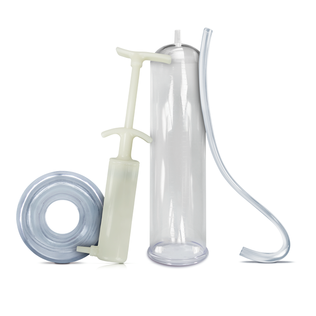Depois de montar a bomba, introduza o pênis lubrificado no cilindro e posicione-o sobre o corpo para vedar. Coloque o dedo contra o orifício localizado na lateral do cilindro e com a outra mão vá precionando a seringa para iniciar a sucção do ar. Quando o pênis estiver totalmente ereto, permaneça neste exercício por aproximadamente dois minutos, retire o dedo do orifício e deixe o ar entrar no cilindro. Repita a operação por várias vezes por dez minutos ao dia.